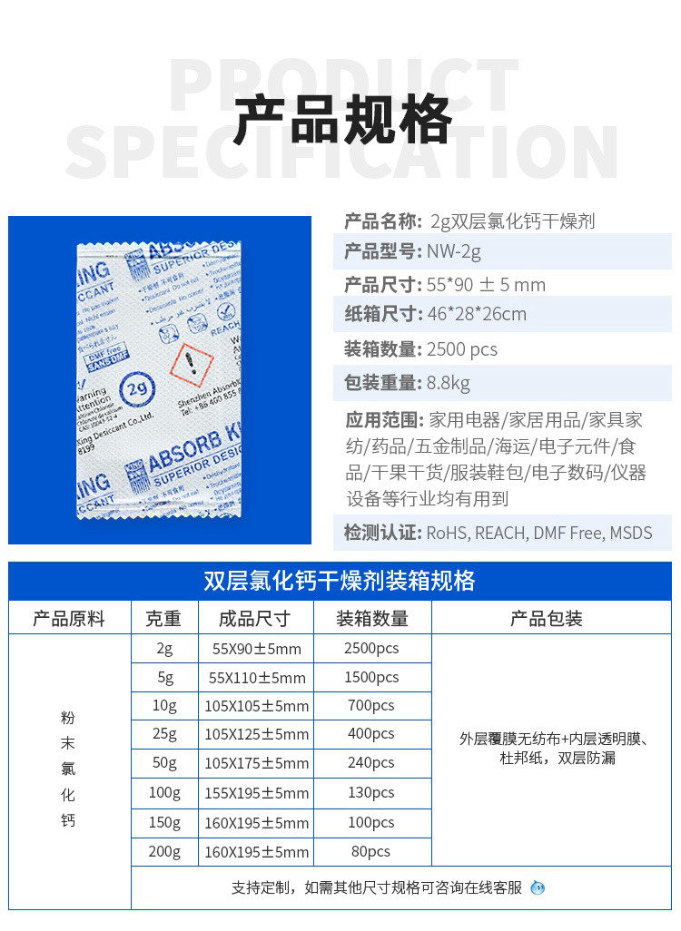 定制氯化钙干燥剂吸附剂家用衣柜地下室电子产品设备防潮霉干燥剂