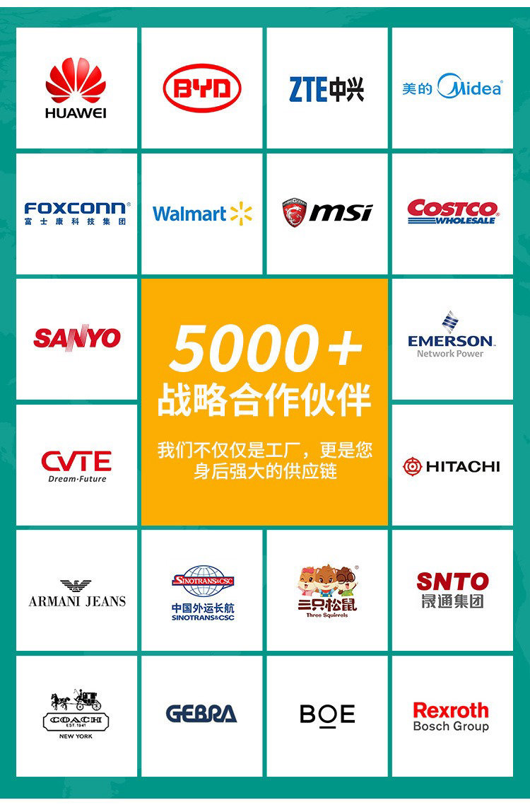 您好,我们是大型生产厂家,拥有现代化工业厂房10000㎡,专业生产及配套设备100余台 。用户遍布全球,华为、微星、中外运等都是我们的长期合作伙伴,可放心采购。