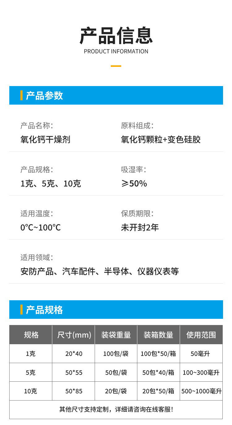 定制找工厂氧化钙干燥剂安防摄像头数码相机防潮专用氧化钙干燥剂