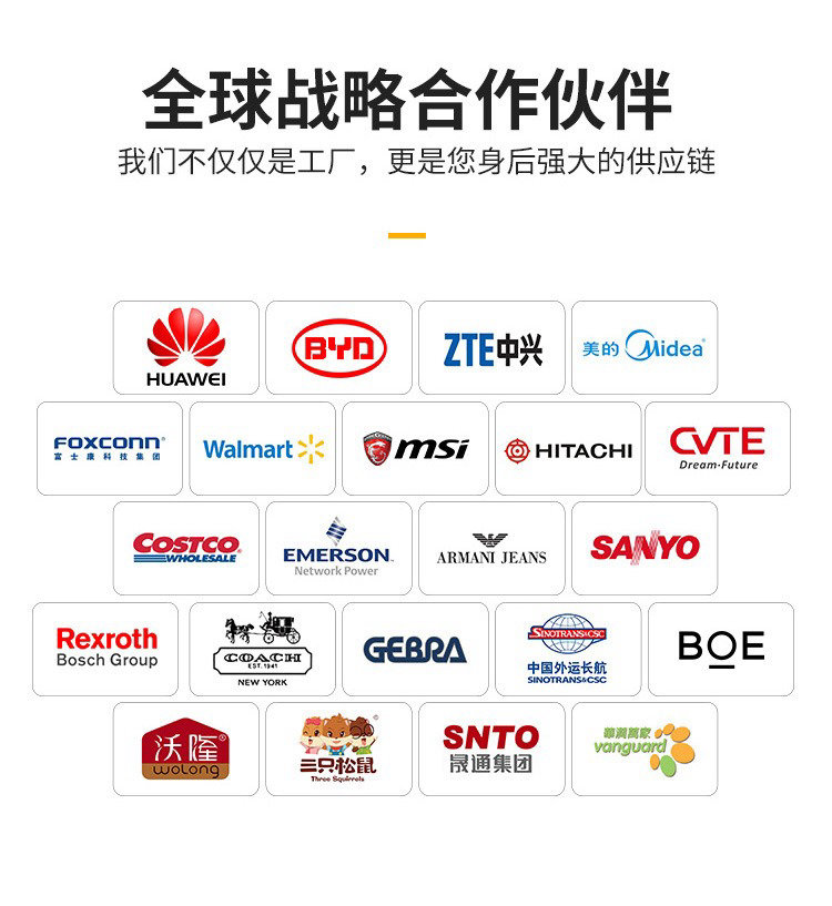 您好,我们是大型生产厂家,拥有现代化工业厂房10000㎡,专业生产及配套设备100余台 。用户遍布全球,华为、微星、中外运等都是我们的长期合作伙伴,可放心采购。