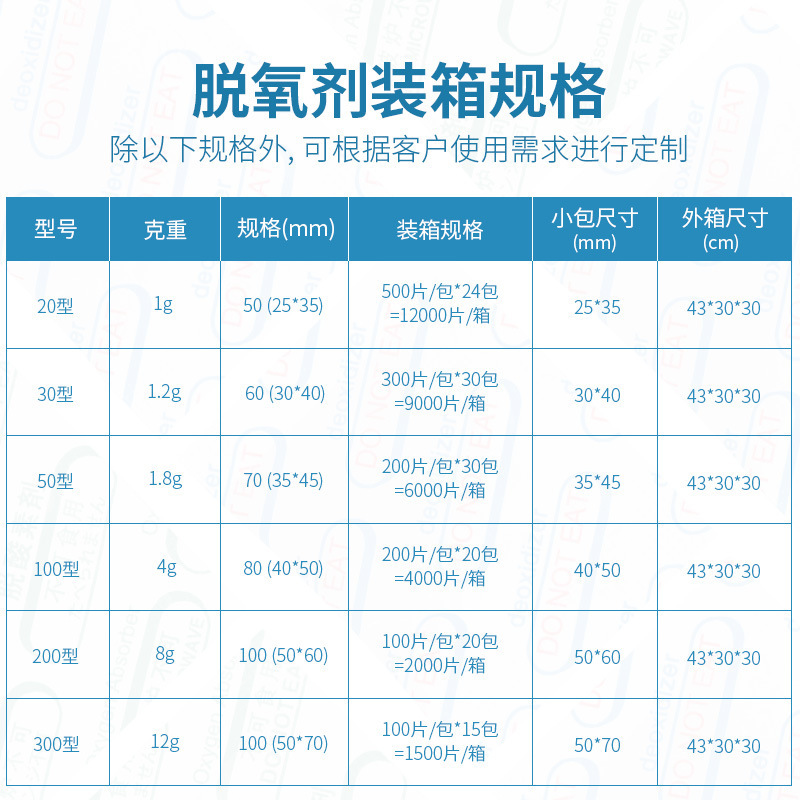 防尘、防水、防油,多种包材可选,食品专业脱氧剂