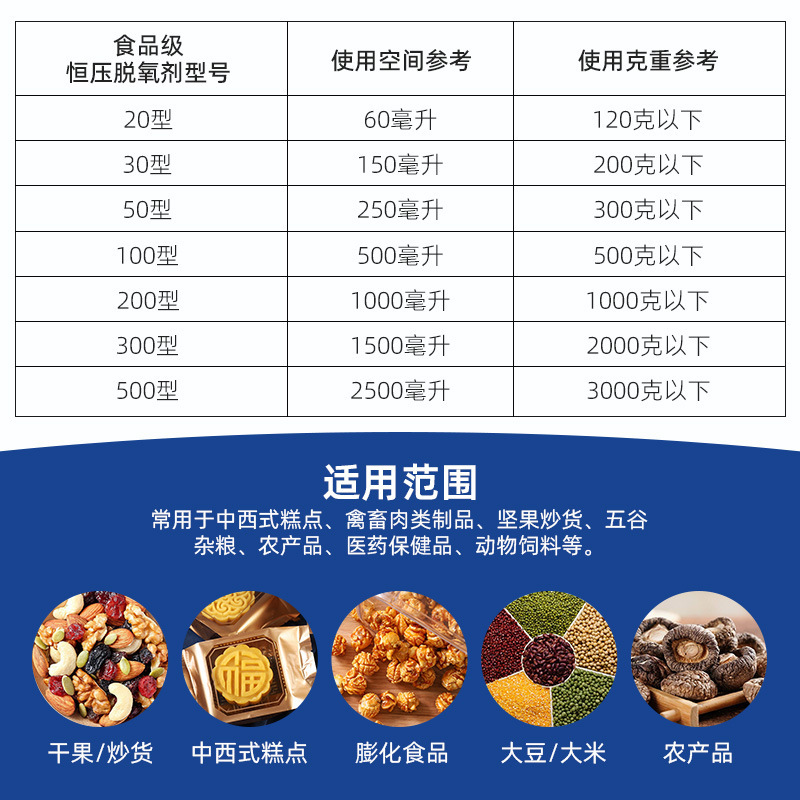 定制有机恒压脱氧剂吸附剂罐装用30型-500型食品坚果干货除氧剂