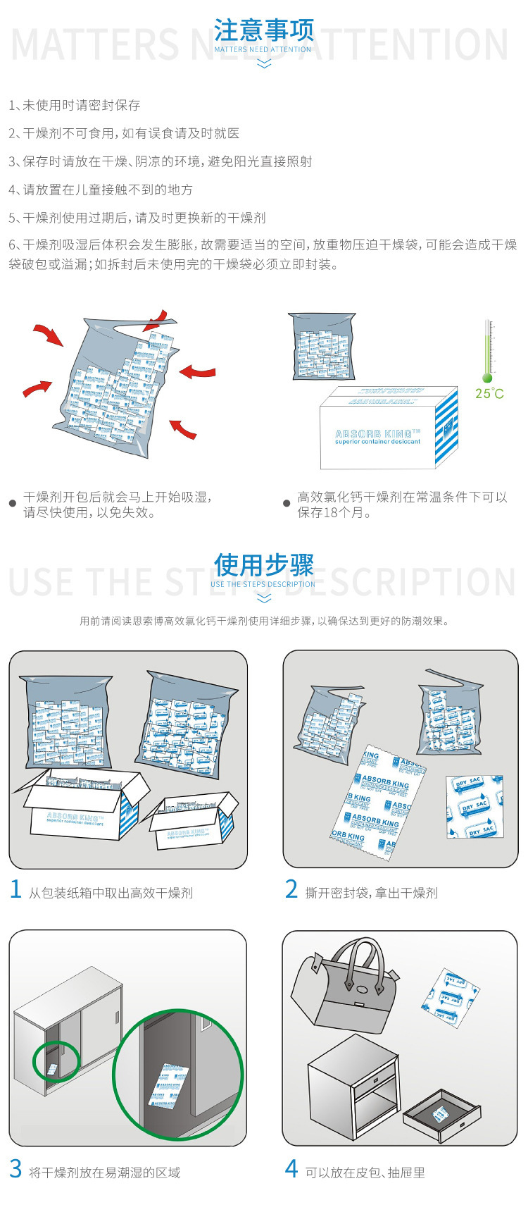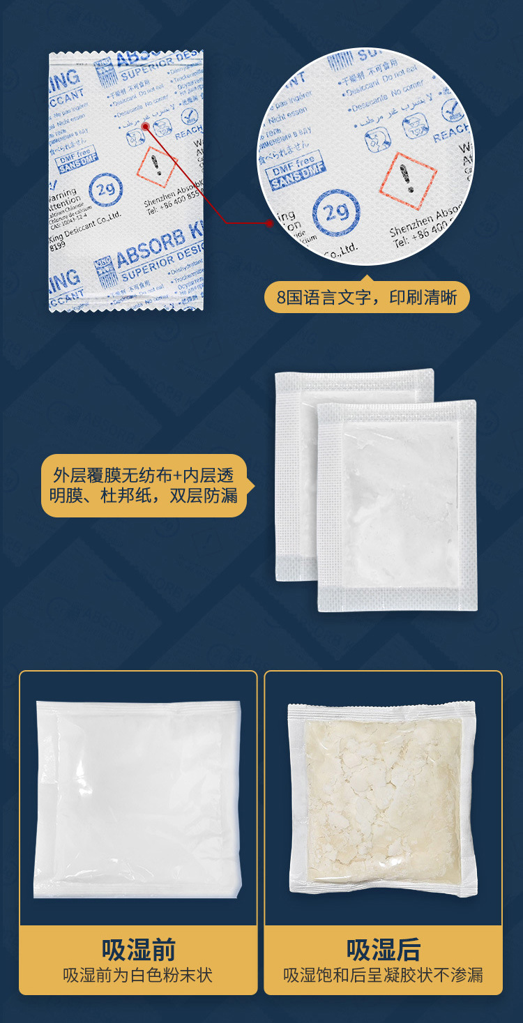 防止产品受潮的最后一道防线(放在包装内部使用)